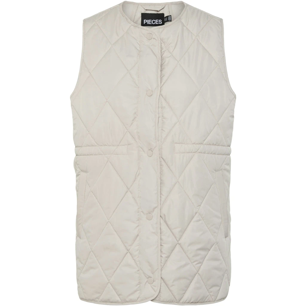 Smart quiltet vest fra Pieces. Vesten har knapper langs fronten og er ideel over en langærmet t-shirt. Tidløs og elegant.