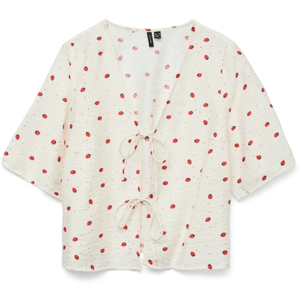 Den fineste bluse med frugtmotiver og bindebånd fra Vero Moda. Blusen skriger på sommer, og kan fint styles med matchende shorts for et komplet, feminint look.