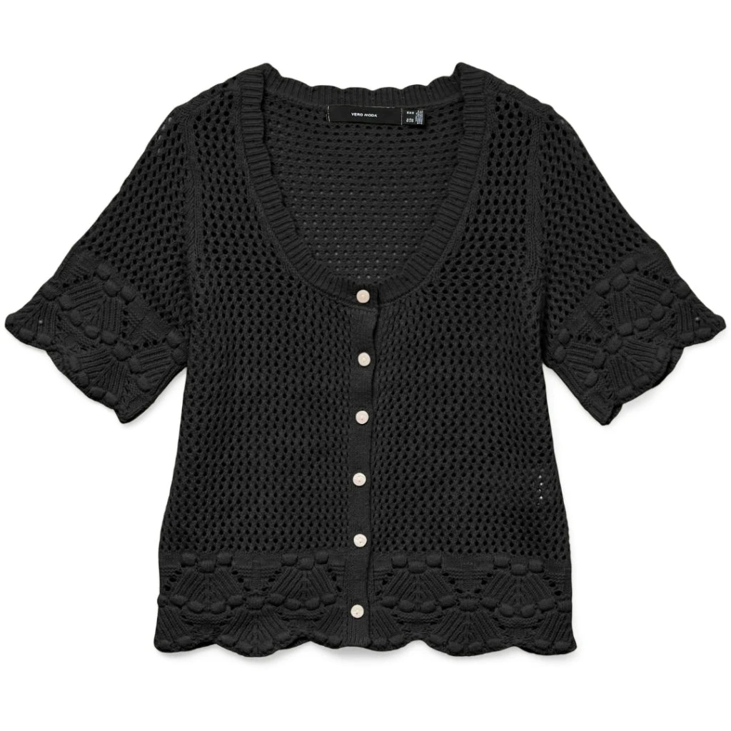 Super fin cardigan med hulmønster fra Vero Moda. Cardiganen har en dyb udskæring, og kan derfor med fordel styles med en basis t-shirt eller top under for et fint lag-på-lag look. Vildt feminin og elegant.