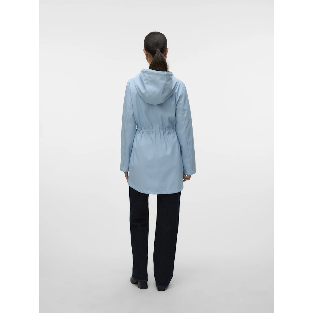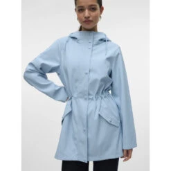 Smart regnjakke fra Vero Moda. Jakken har hætte, lommer i siderne og snørning i taljen. Den holder dig tør på regnfulde dage, og er perfekt til både hverdagsbrug og udendørsaktiviteter.