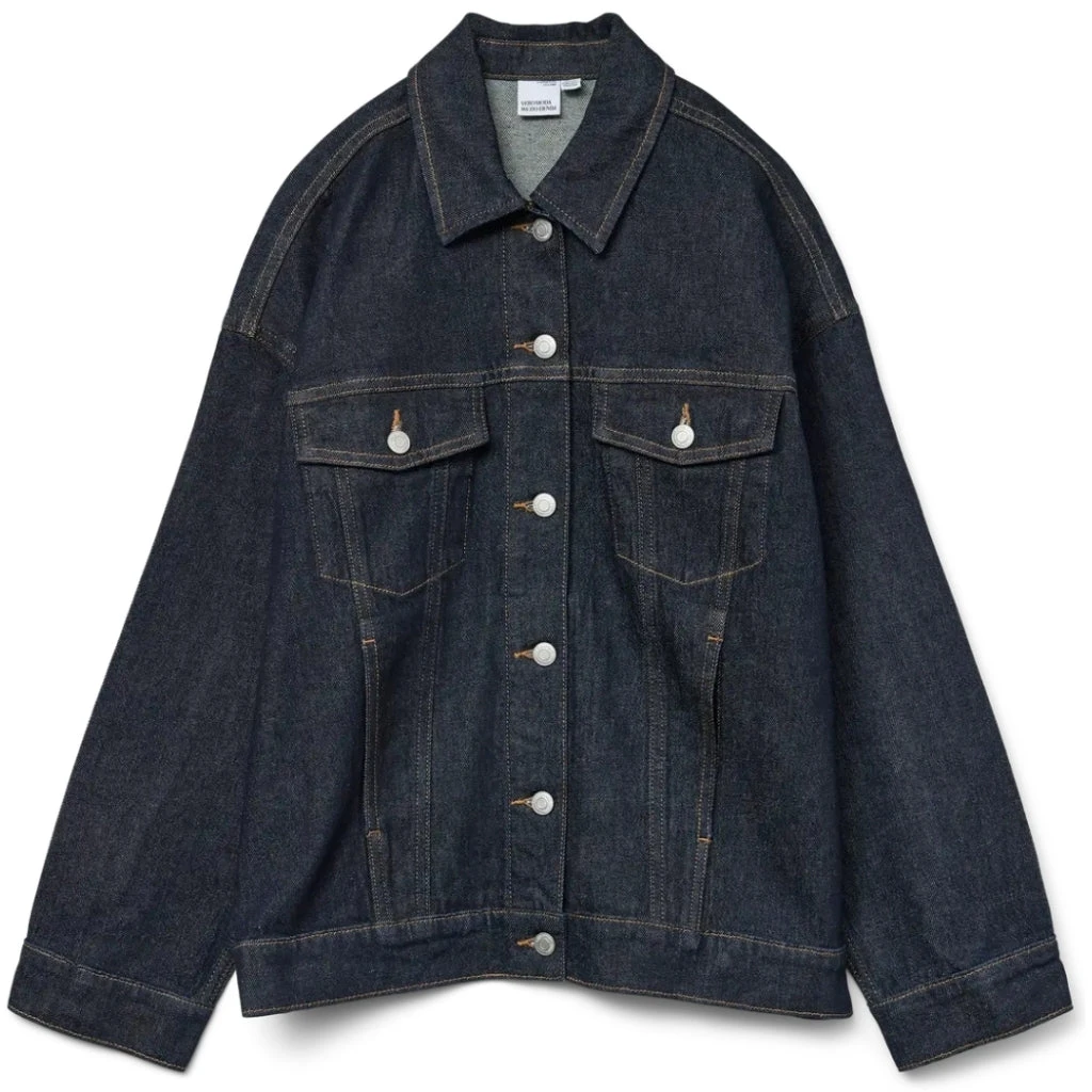Cool denimjakke i den sejeste vask med krave, brystlommer og knapper langs fronten. Brug den som jakke her til foråret og sommeren, og tilføj jeans eller en nederdel.