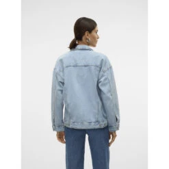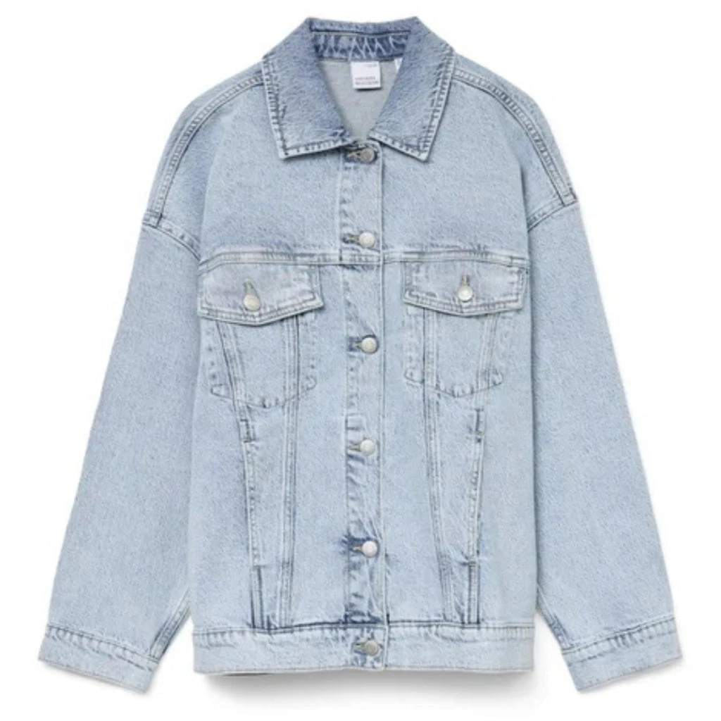 Cool denimjakke i den sejeste vask med krave, brystlommer og knapper langs fronten. Brug den som jakke her til foråret og sommeren, og tilføj jeans eller en nederdel.