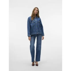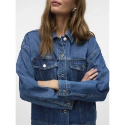 Cool denimjakke i den sejeste vask med krave, brystlommer og knapper langs fronten. Brug den som jakke her til foråret og sommeren, og tilføj jeans eller en nederdel.
