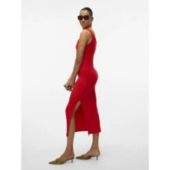 Fin og feminin tætsiddende kjole med det smukkeste slids i siden. Kjolen har lidt tykkere stropper end den klassiske spaghettistropkjole vi kender, en detalje vi er vilde med. Ideel til festlige anledninger med stiletter og smukke accessories.