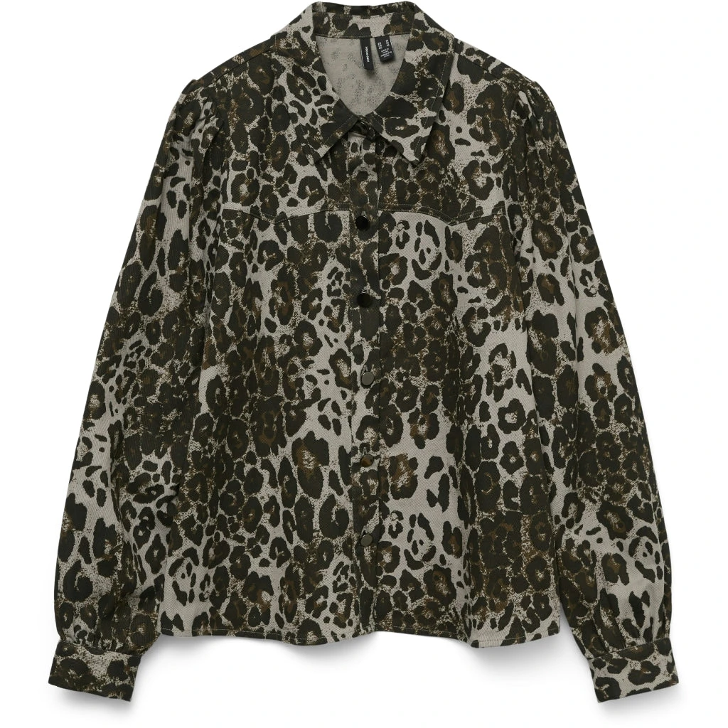 Sej leopardskjorte med knapper langs fronten fra Vero Moda. For et fuldendt look kan skjorten styles med bukserne fra samme serie, og bruges til et par slingback stiletter.