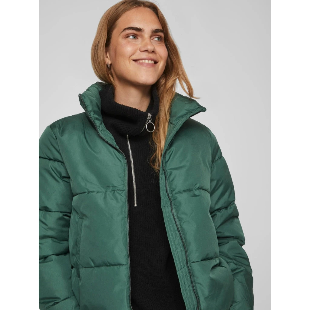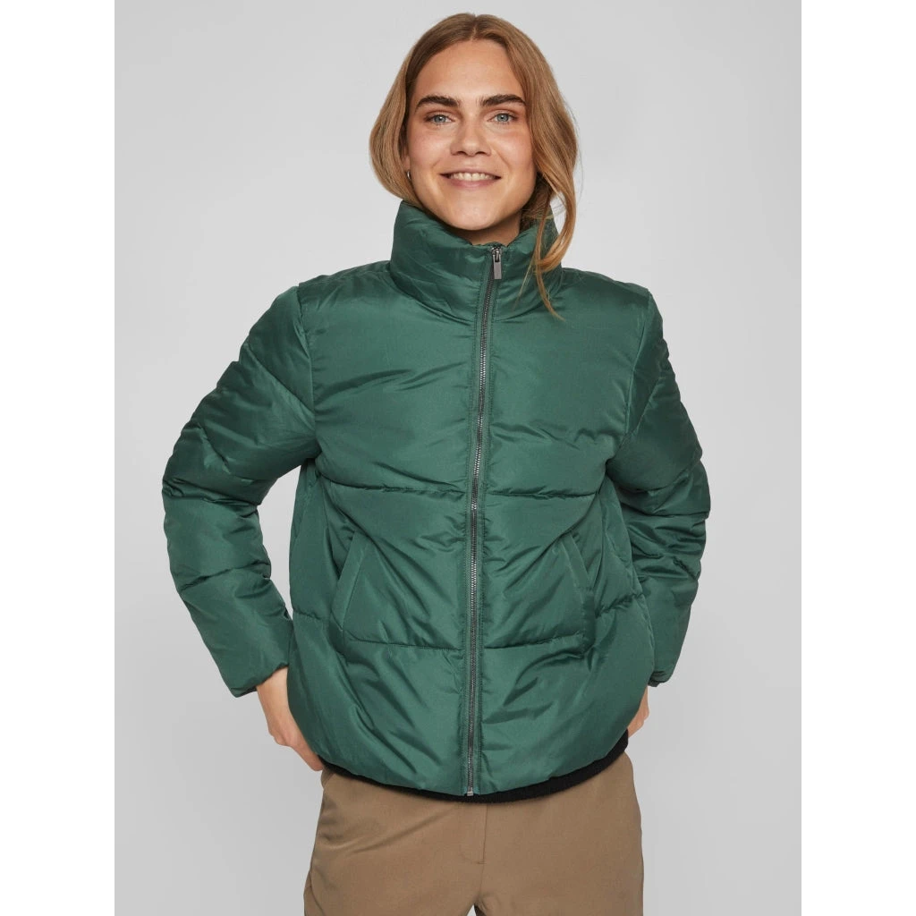 Dejlig varm og kort pufferjakke med høj hals fra Vila. Style den med et par biker boots for et råt og cool look.