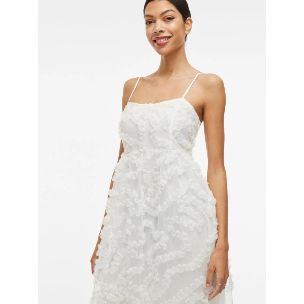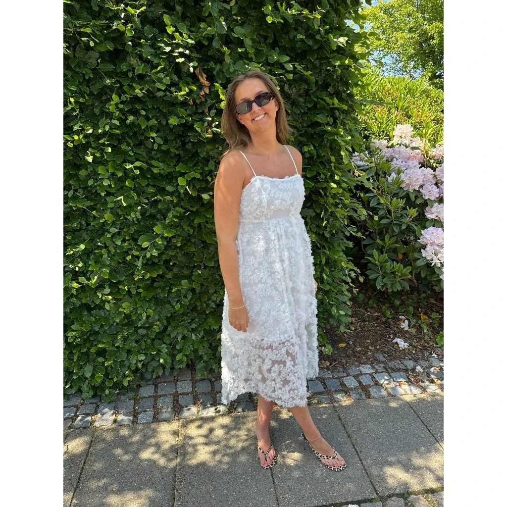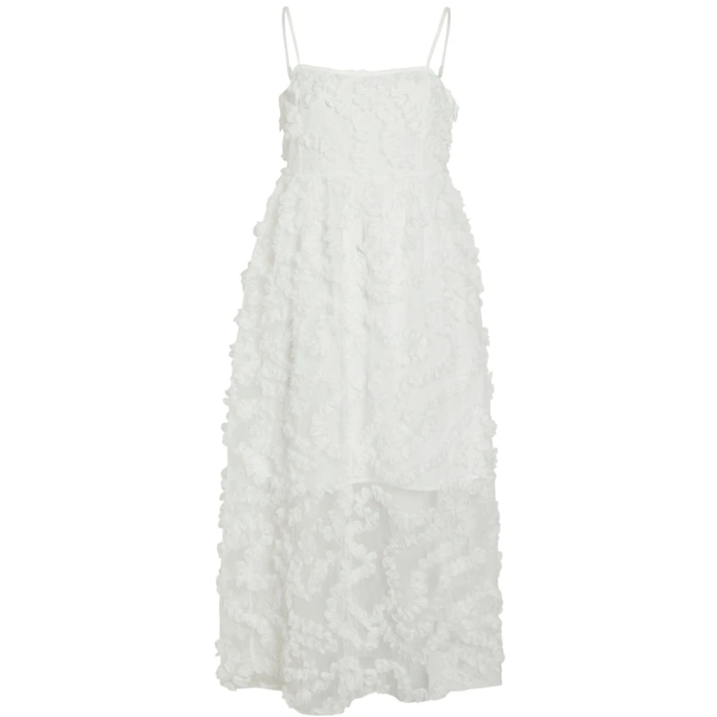 Super elegant og smuk kjole fra Vila med de flotteste detaljer. Kjolen har spaghettistropper, et unikt mønster og en underkjole. Den er ideel til sommerens festlige begivenheder med et par stiletter eller ballerinaer.