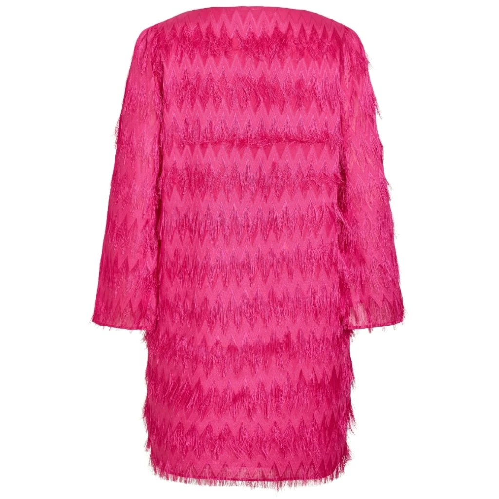 Den smukkeste kjole fra Vila med fine detaljer. Kjolen har et flot mønster og lette frynsedetaljer, der giver et super festligt touch. Perfekt til en aften ude, hvor du vil føle dig ekstra fin. Tilføj slingback stiletter og smukke accessories.
