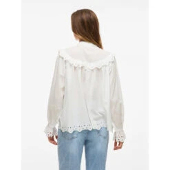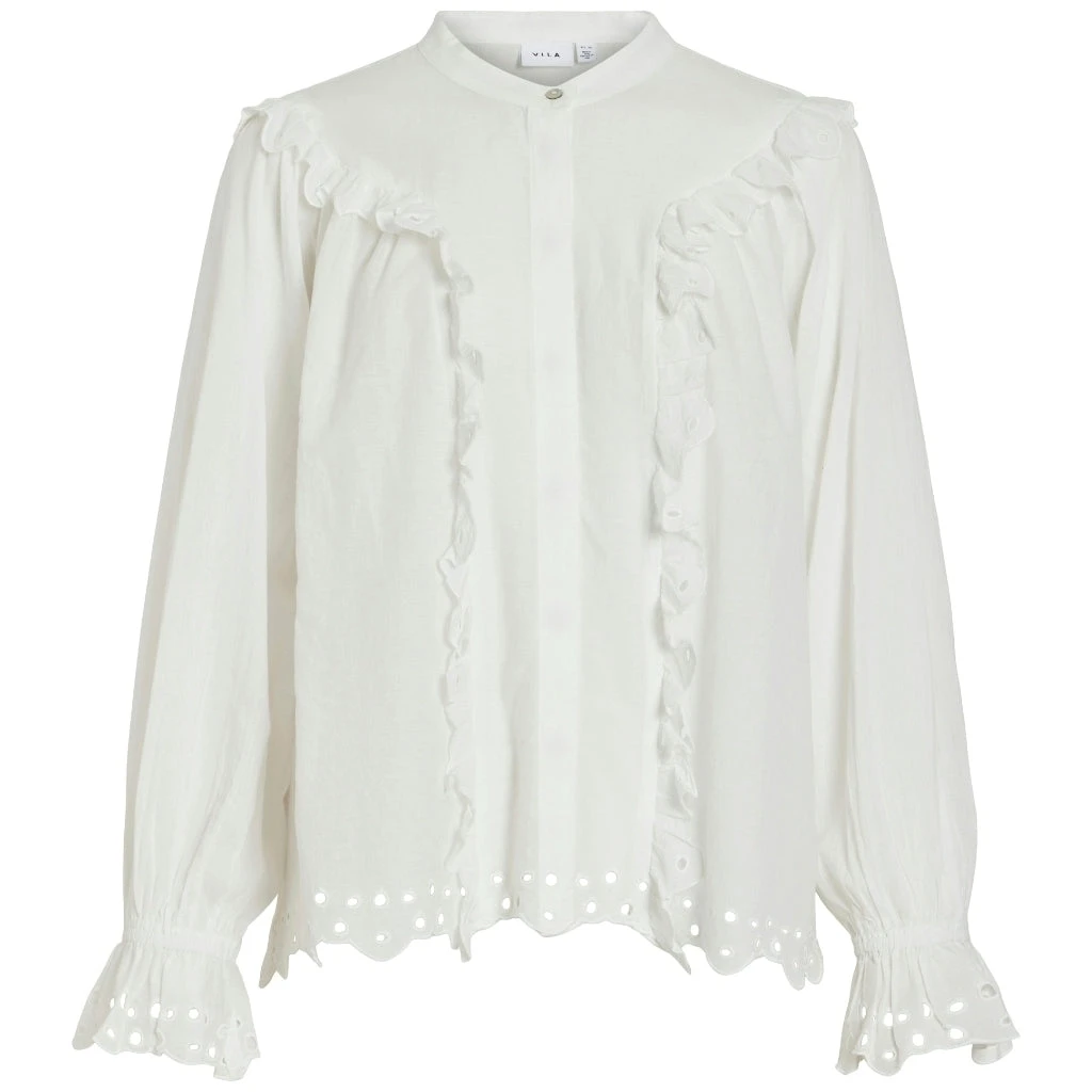Super smuk skjorte med fine flæsedetaljer fra Vila. Den er vildt feminin og elegant, og ideel til både hverdag og festlige anledninger. Brug den til hverdag med jeans og sneakers, og med en nederdel og stiletter til finere brug.