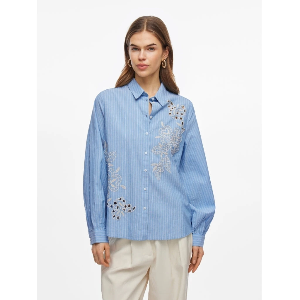 Smuk, elegant skjorte fra Vila. Skjorten har det fineste print, der kan pifte ethvert outfit op. Den er gennemknappet og har en klassisk krave, og den kan både bruges til hverdag og finere brug.